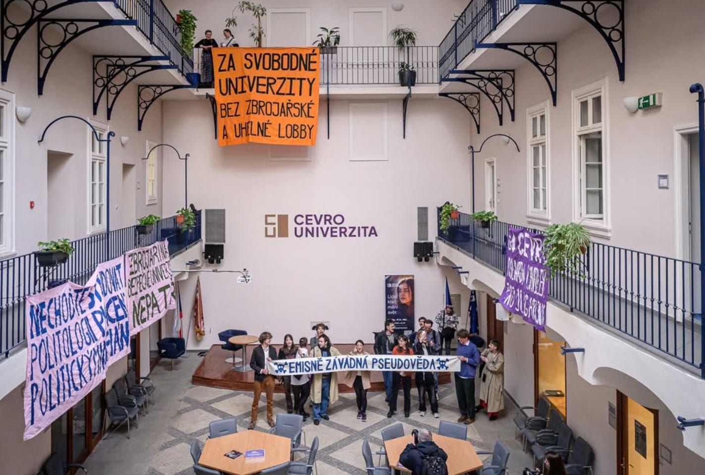 Považujeme za nepřípustné, že nezávislé státní univerzity musí bojovat o každou korunu, zatímco si uhlobaroni a zbrojaři si mohou zařídit svoji konzervativní univerzitu, která publikuje názory podle jejich gusta. Díky jejich financím, tak odborníci z CEVRO univerzity budou moct klimatickou změnu popírat ještě hlasitěji. Potřebujeme nezávislou vědu, ne vědu poplatnou byznysovým zájmům uhlobaronů a zbrojařů.