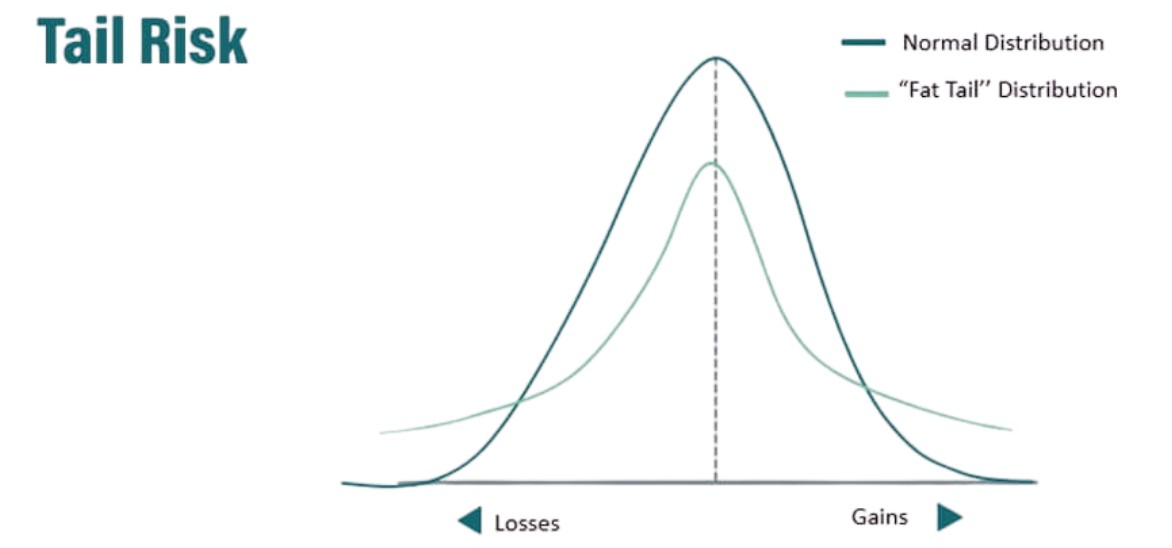 V ruské ruletě hráč vloží náboj do jednoho z šesti slotů revolveru, protočí bubínek, přiloží hlaveň ke spánku a stiskne spoušť. Šance na výstřel je 1:6 (16,6 %). Pokud hra pokračuje bez protočení bubínku, zbývá už jen 5 slotů. Šance na výstřel při dalším stisknutí spouště je tedy 1:5 (20 %), poté 1:4 a tak dále až 1:1. Čím déle hru hraju, tím vyšší je šance na výstřel. Ve statistice se tomu říká fat tail risk - opakované vystavení se riziku (jakkoli malému) časem téměř zaručí extrémní následky. Riziko extrémní události v čase neklesá tak rychle, jak bychom v dokonalém systému očekávali.